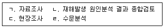 재해발생원인 분석중 수문·수리학적 원인분석 절차를 순서대로나열한것?
