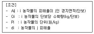 자연재해위험지구 관리지침상 총농작물 피해액 계산식을 옳은 것은?