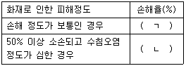 화재피해액 산정 시 가재도구의 소손 정도에 따른 손해율로 ()에 알맞은 기준은?