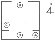 다음은 어느 주택 화재현장의 도면을 그린 것이다. 도면에 표시된 Ⓐ~Ⓓ에 대한 각각의 설명에 근거하여 발화지점으로 추정할 수 있는 곳은?