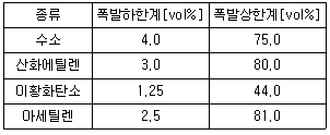 다음 표에 있는 가스를 위험도가 큰 것부터 순서대로 나열한 것으로 옳은 것은?