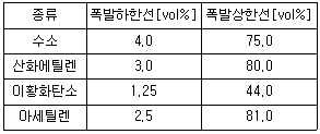 다음 표의 가스들을 위험도가 높은 물질부터 순서대로 나열한 것은?