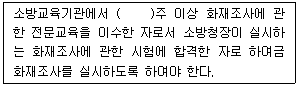 다음은 소방기본법령상 화재조사전담부서의 장이 소속 소방공무원 가운데 화재조사를 실시하도록 하여야 하는 자의 기준에 대한 내용이다. 다음 ( )안에 알맞은 것은?
