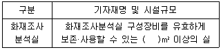 소방기본법령에 따른 소방본부(거점소방서 포함) 화재조사전담부서에 갖추어야 할 장비 및 시설 기준 중 다음 ( ) 안에 알맞은 것은?