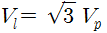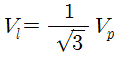 평형 3상 교류회로에서 Y결선할 때 선간전압(Vl)과 상전압(Vp)의 관계는?