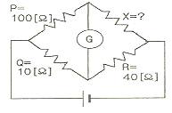 회로에서 검류계의 지시기가 0일때 저항 X는 몇 [Ω]인가?