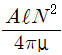 단면적 A(m2), 자로의 길이 ℓ(m), 투자율 μ, 권수 N회인 환상 철심의 자체 인덕턴스(H)는?