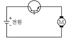 그림은 트랜지스터의 스위칭 작용에 의한 직류 전동기의 속도제어 회로이다. 전동기의 속도가