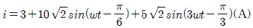 어느 회로의 전류가 다음과 같을 때, 이 회로에 대한 전류의 실효값(A)은?