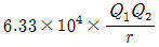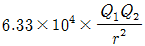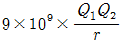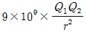 진공 중의 두 점전하 Q1(C), Q2(C)가 거리 r(m)사이에서 작용하는 정전력(N)의 크기를 옳게 나타낸 것은?