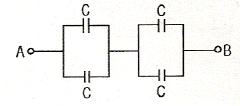 그림과 같이 C = 2[㎌]의 콘덴서가 연결되어 있다. A점과 B점 사이의 합성 정전용량은 얼마인가?
