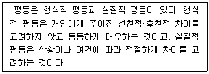 다음은 평등에 대해 설명한 것이다. 이것을 고려하여 헌법상 기본권 내용과 조항이 옳은 것은?