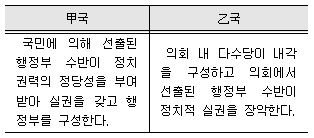 다음 표는 전형적인 정부 형태를 분류한 것이다. 이에 대한 설명으로 가장 적절하지 않은 것은?