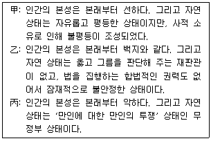 다음 甲~丙은 대표적인 근대 정치 사상가이다. 이들의 주장에 대한 설명으로 가장 적절하지 않은 것은? (단, 홉스, 로크, 루소 중 각각 하나이다.)