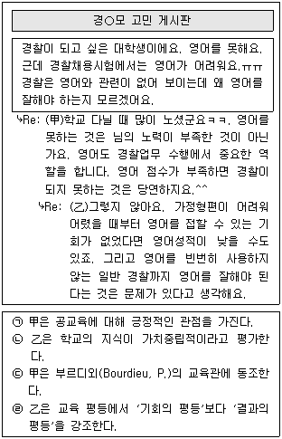 다음은 시험에 관한 甲과 乙의 관점이다. 이에 대한 옳은 설명을 보기에서 모두 고른 것은? (단, 甲과 乙의 관점은 서로 다른 기능주의와 갈등주의 중 하나이다.)