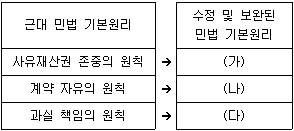 다음 (가)~(다)의 민법 기본원리에 대한 설명으로 가장 적절한 것은?