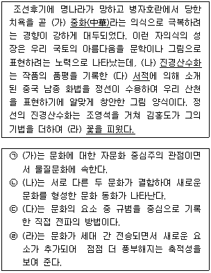다음은 진경산수화에 관한 지문이다. 지문의 맥락에서 밑줄 친 (가)부터 (라)까지에 대한 설명으로 옳은 것을 보기에서 모두 고른 것은?