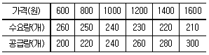 다음 표는 X재의 수요 및 공급표를 나타낸 것이다. 이에 대한 분석으로 가장 적절한 것은? (단, X재의 수요와 공급 곡선은 모두 직선이다.)