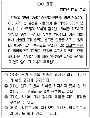 다음 신문 기사를 통해 추론할 수 있는 밑줄 친 (가)부터 (라)까지에 대한 설명으로 옳은 것을 보기에서 모두 고른 것은? (단, A국가의 정부 형태는 전형적인 대통령제 또는 의원 내각제 중 하나이다.)