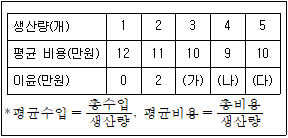 다음 표는 甲기업의 X재 생산에 따른 평균 비용과 이윤을 나타낸다. 이에 대한 분석으로 가장 적절한 것은? (단, 생산된 X재는 모두 판매되며, 평균 수입은 생산량과 관계없이 일정하다.)