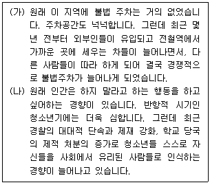 다음 (가), (나)는 각각 ○○시 불법 주차와 청소년 폭력 문제에 관한 설명이다. (가), (나)의 일탈 행동의 유형에 맞는 해결 방안으로 가장 적절한 것은?