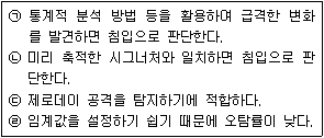 다음은 오용탐지(misuse detection)와 이상탐지(anomaly detection)에 대한 설명이다. 이상탐지에 해당되는 것을 모두 고르면?