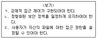 <보기>는 TCSEC(Trusted Computer System Evaluation Criteria)에 의하여 보안 등급을 평가할 때 만족해야 할 요건들에 대한 설명이다. 보안 등급이 높은 것부터 순서대로 나열된 것은?