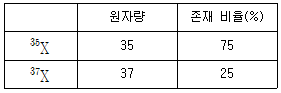 다음은 원소 X의 동위 원소에 관한 표이다. X의 평균 원자량은 얼마인가?