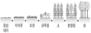 그림은 식물 군집의 천이 과정을 나타낸 것이다. 이에 대한 설명으로 옳은 것은?