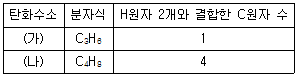 표는 탄화수소 (가)와 (나)에 대한 자료이다. 이에 대한 설명으로 옳지 않은 것은?