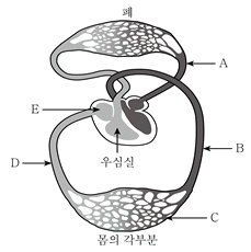그림은 사람의 순환계를 나타낸 것이다. 이에 대한 설명으로 옳은 것은?