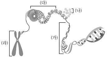그림은 염색체와 그 세부 구조를 나타낸 것이다. 이에 대한 설명으로 옳지 않은 것은?