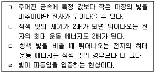 금속 표면에 적색 빛을 비출 때 표면에서 전자가 튀어나오는 현상과 관련된 설명으로 보기에서 옳은 것만을 고른 것은?