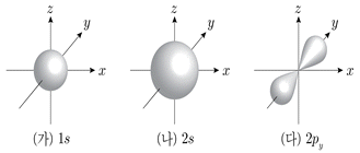 그림은 오비탈 (가)~(다)를 모형으로 나타낸 것이다. 이에 대한 설명으로 옳은 것은?