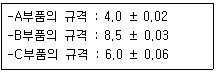 다음과 같은 규격의 3가지 부품 A, B, C를 이용하여 B+C-A와 같이 조립할 경우 이 조립품의 허용차는?