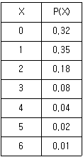 대형 컴퓨터 네트워크를 운영하는 A씨는 하루 동안의 네트워크 장애건수 X에 대한 확률분포를 다음과 같이 구하였다. X의 기대값 μ와 표준편차 σ는 약 얼마인가?