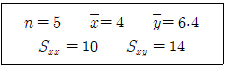 직선회귀에서 데이터가 다음과 같을 때, 단순회귀식으로 맞는 것은?