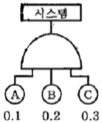 다음의 고장목그림(FT도)에서 시스템의 고장 확률은? (단, 주어진 수치는 각 구성품의 고장률이며, 각 구성품의 고장은 서로 독립이다.)