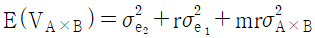 단일 분할법에서 일차단위가 1요인 실험일 때 A, B는 모수요인이고, 수준수가 각각 l, m 이며, 블록반복 R의 수준수가 r인 경우 평균제곱의 기댓값으로 맞는 것은? (단, 요인 A는 일차단위, 요인 B는 이차단위이다.)