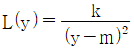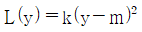 망목특성을 갖는 제품에 대한 손실함수는? (단, L(y)는 손실함수, k는 상수, y는 품질특성치, m은 목표값이다.)
