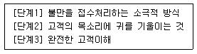 A.R Tenner는 고객만족을 충분히 달성하기 위하여 그 단계를 다음과 같이 정의했을 때, [단계2]에 해당하지 않는 것은?