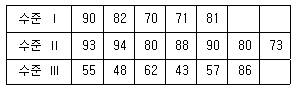 다음 표는 1요인 실험에 의해 얻어진 특성치이다. F0값과 F분포의 자유도는 얼마인가?
