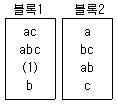 23형 요인배치실험을 교락법을 사용하여 다음과 같이 2개의 블록으로 나누어 실험하려고 할 때, 블록과 교락되어 있는 교호작용은?