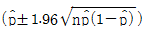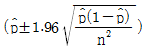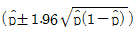 )로부터 모부적합품률에 대해 정규분포 근사법을 이용하여 95%의 신뢰율로 신뢰한계를 구할 때 사용하여야 할 식으로 맞는 것은? (단, n은 샘플의 크기이다.)
