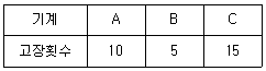 어떤 공장에서 A, B, C 기계의 고장횟수는 아래 표와 같다. 기계에 따라 고장횟수가 차이가 있는지 검정하고자 할 때의 설명으로 틀린 것은?