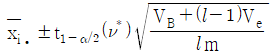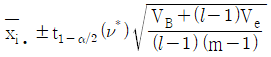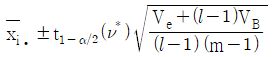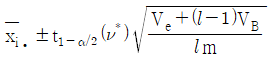 난괴법 실험에서 분산분석결과 A(모수요인)이 유의한 경우, 요인 A의 각 수준에서 모평균 μ(Ai)의 신뢰구간 추정식은? (단, ν*는 Satterthwaite 자유도이다.)