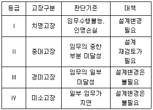 다음 표는 고장평점법의 고장 등급에 따른 고장구분, 판단기준 및 대책을 나타낸 것이다. 내용이 틀린 등급은?