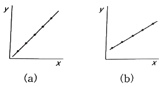 다음의 두 상관도에서 (a), (b)에서 x, y 사이의 표본상관계수에 대한 크기를 비교한 것으로 맞는 것은?