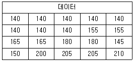 다음 20개의 데이터(data)의 중위수(median)는 얼마인가?