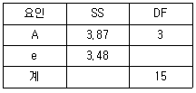 다음의 1요인 분산분석표에 의하여 구한 검정통계량 F0의 값은 약 얼마인가?